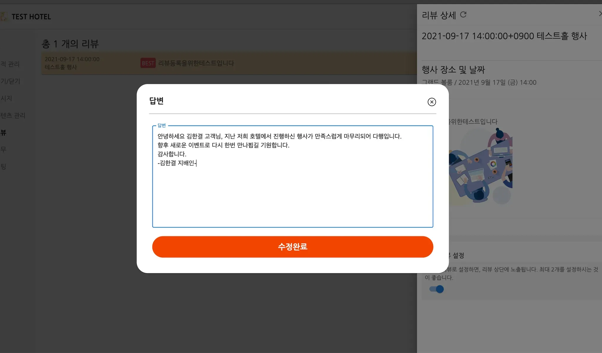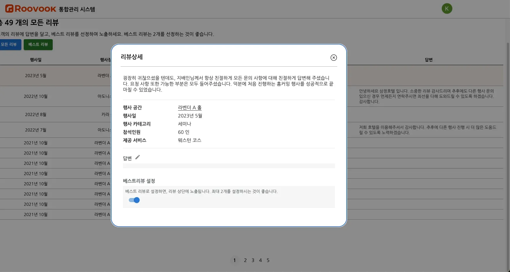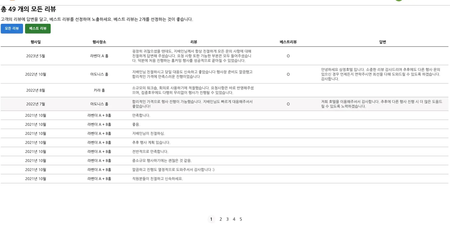 공간 대관부터 단체 객실까지, 업계 최대 B2B이벤트 고객 리뷰 관리 시스템